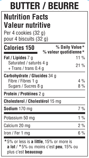 Ingredients: Unbleached enriched wheat flour, Brown sugar, Unsalted butter, Oats, Water, Vanilla extract, Salt, Sodium bicarbonate.